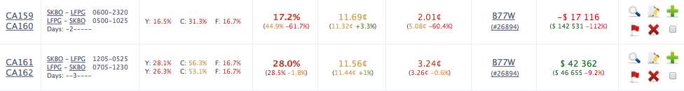 You're doing that quite a bit, not just on LH planes. #547 & #937 are EMBs 30 minutes apart on a 280 pax route. #487 & #1263 are only 5 minutes apart, #371 is a fill-in on your 767 that is also very close to both of those.