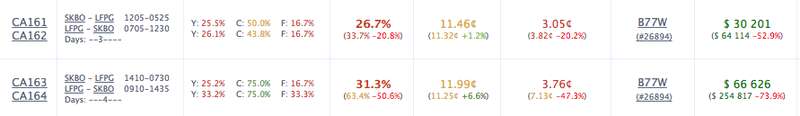 I am flying various routes to Europe with none or little over demand in a 777-300, they have an average of 33%-55%