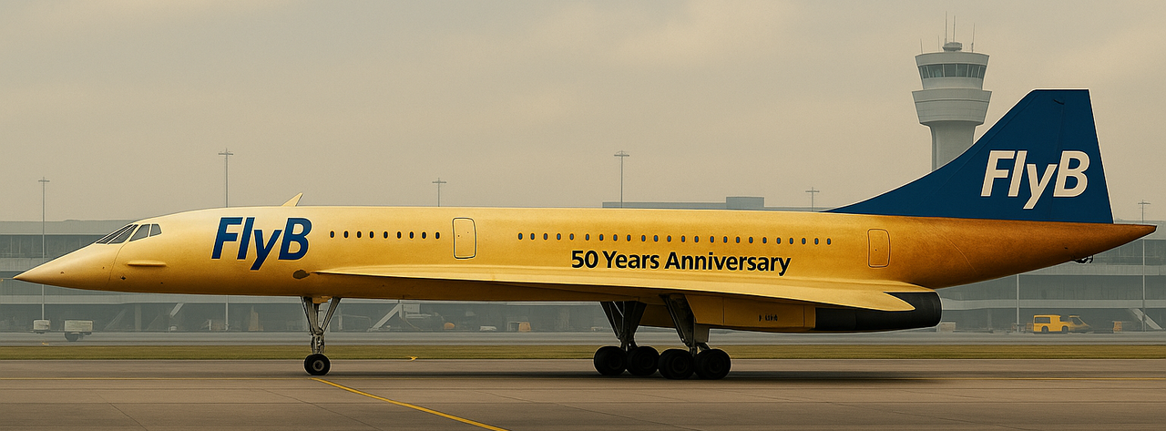 FlyB Airways, France's cheekiest carrier and proud heir to the Fly Breguettes tradition, is cranking the afterburners for its 50-year anniversary by pulling a legendary bird out of the hangar: Concorde F-BGGV (that's "Baguette Grande Vitesse" to friends).